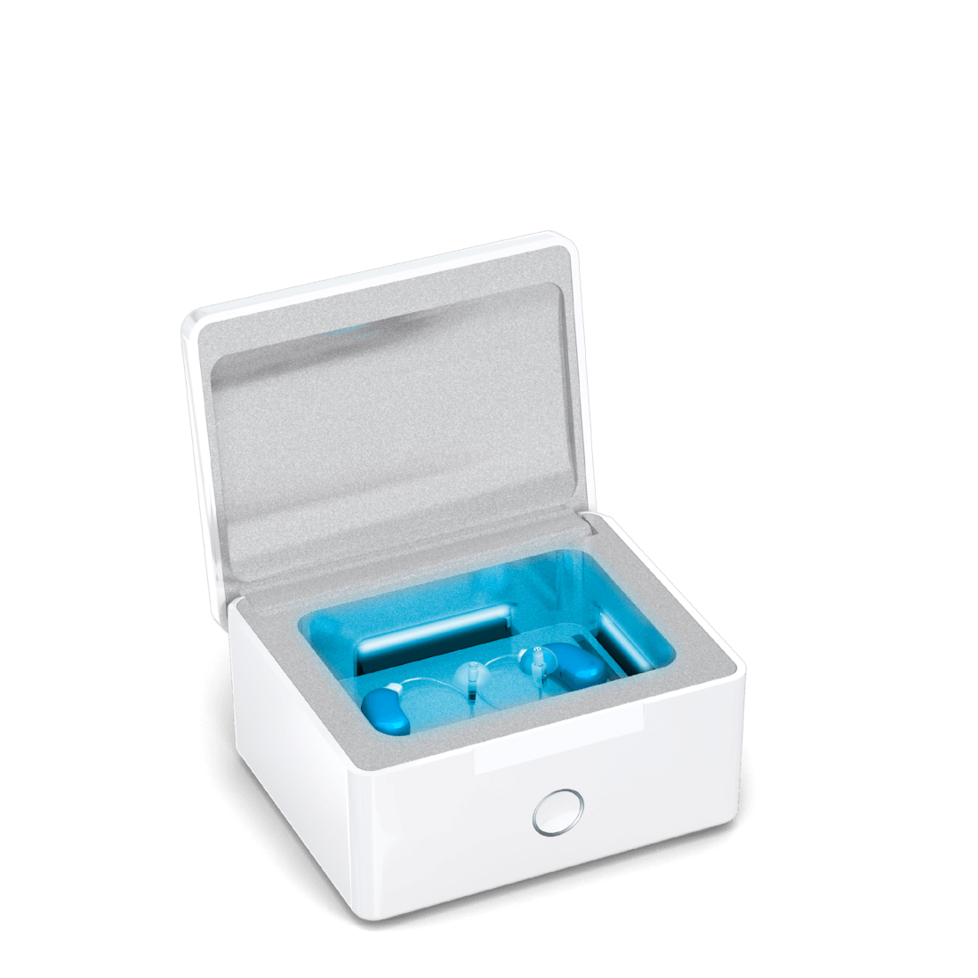 Ipulsowy system osuszania gorącym powietrzem dla zoptymalizowanego i równomiernego przepływu. Automatyczna regulacja temperatury (<35°C +/-3°C). Kontrolowany system wentylacji. Promienie UV-C są generowane przez lampę o krótkiej fali, której pierścieniowy układ 360° umożliwia dotarcie do wszystkich powierzchni aparatu słuchowego. Zakrzywiony przycisk dotykowy dla łatwej obsługi i lampka ostrzegawcza. Automatycznie wyłącza się po zakończeniu cyklu i otwiera pokrywę. Nadaje się do wszystkich rodzajów aparatów słuchowych i wkładek usznych. Energooszczędny.